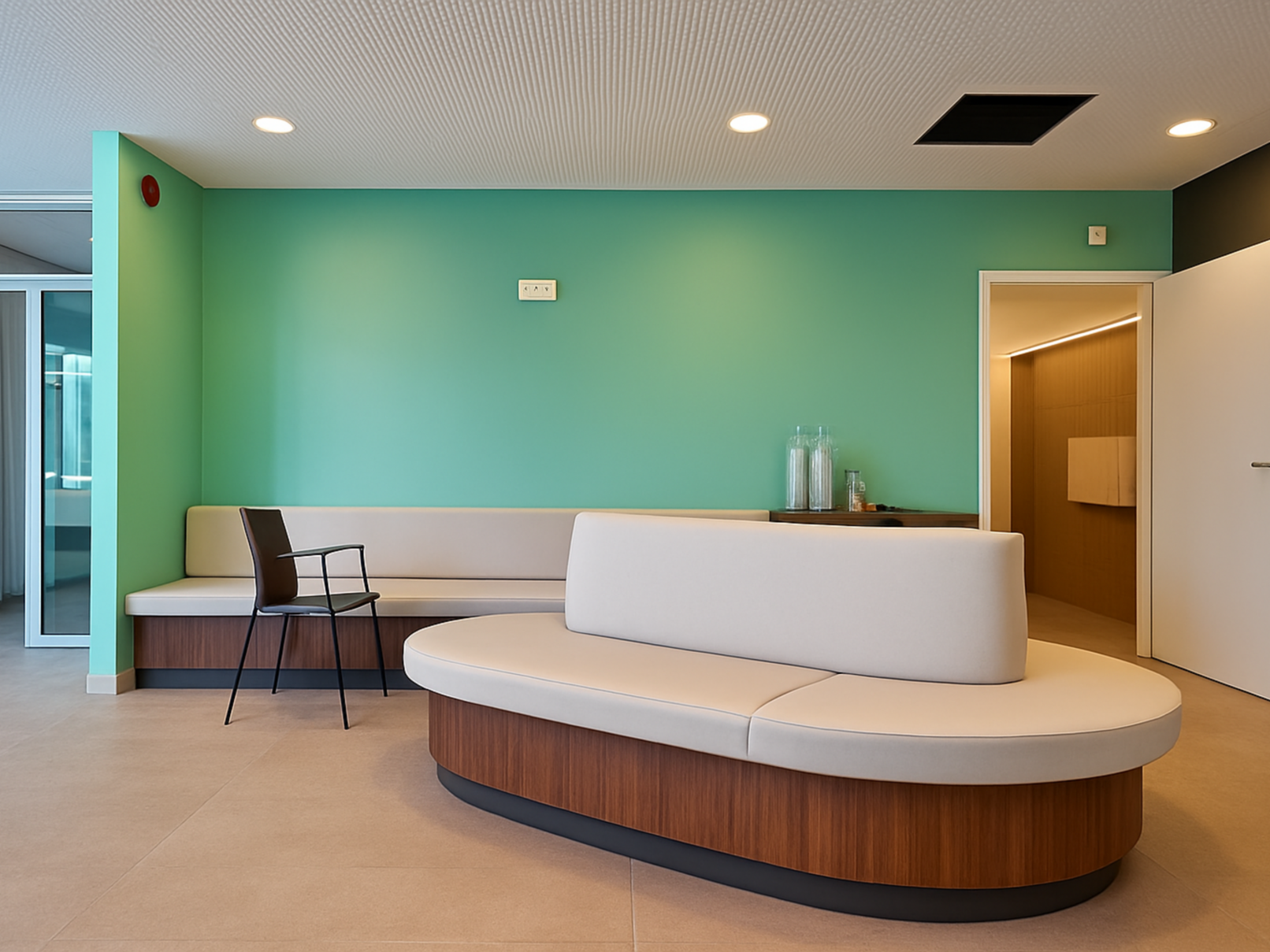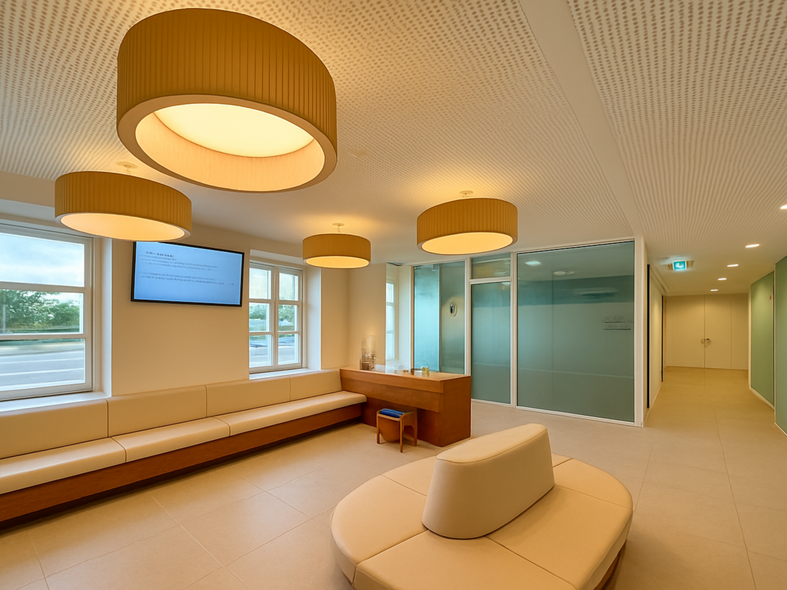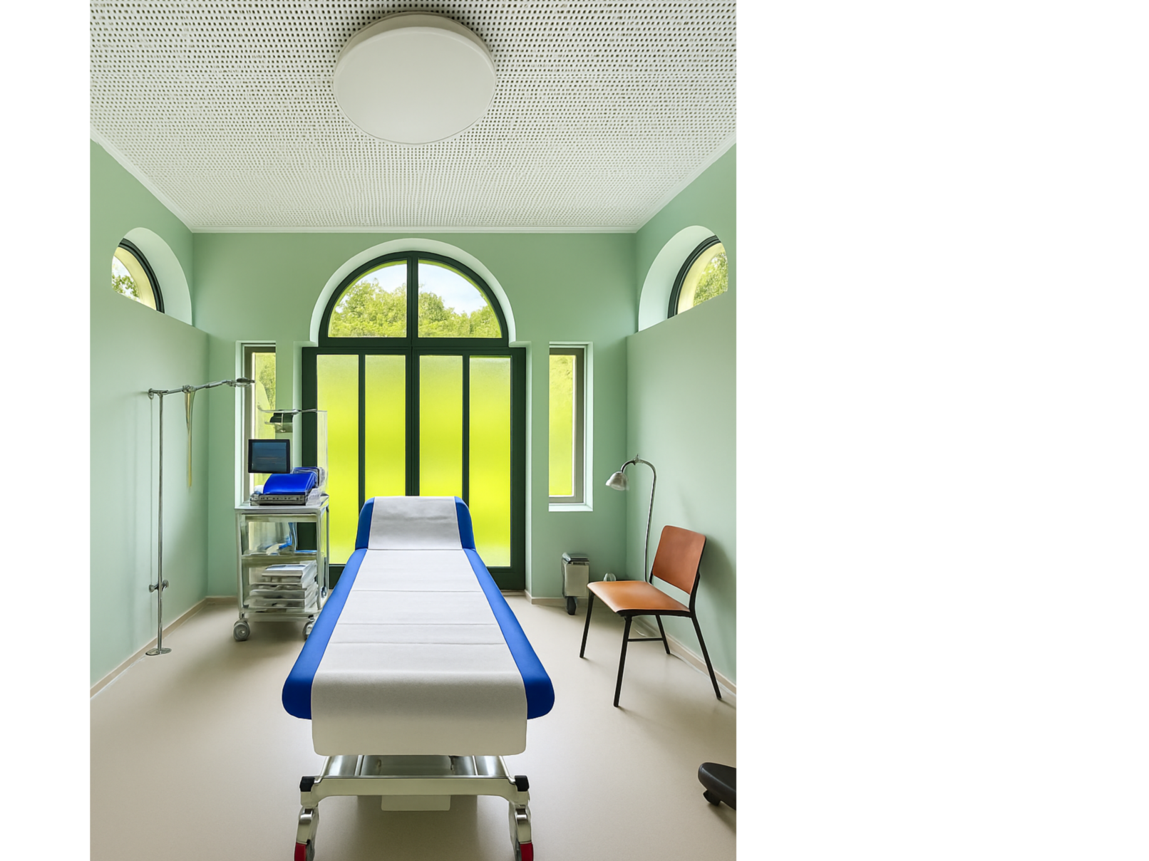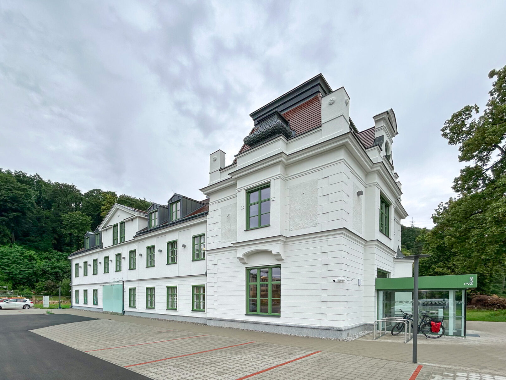 Im dem denkmalgeschützten Herrenhaus der ehemaligen Spitzenfabrik in Viehofen wurde ein Primärversorgungszentrum eingerichtet. Es galt, die bestehenden Räumlichkeiten optimal zu nutzen, um einen reibungslosen Ordinationsablauf sicherzustellen. Der zentrale Eingang mit dem großzügigen Empfangsbereich wurde an der Schmalseite des Gebäudes situiert, da sich hier der später zugebaute, aber prominentere Baukörper befindet und die Ordinationen von hier aus am besten erschlossen werden können. Von hier aus kommt man in das zentrale Stiegenhaus, welches als Verteiler der Versorgungseinrichtung dient. Im EG sind Notaufnahme, Diagnostik und ein separater Infekt-Eingang untergebracht. Für die Krankenwagen sind Stellplätze und Notfalleinrichtungen vorgesehen. Im OG stehen neben weiteren Behandlungsräumen, unter anderem einem Kinderbereich, ein Eingriffsraum sowie zwei Röntgenräume zur Verfügung. Das Dachgeschoß birgt die Verwaltung und einen kleinen Veranstaltungsraum.