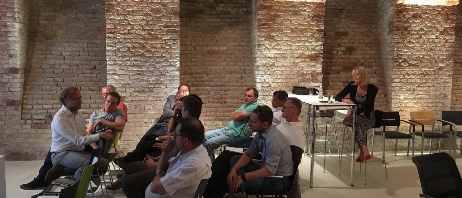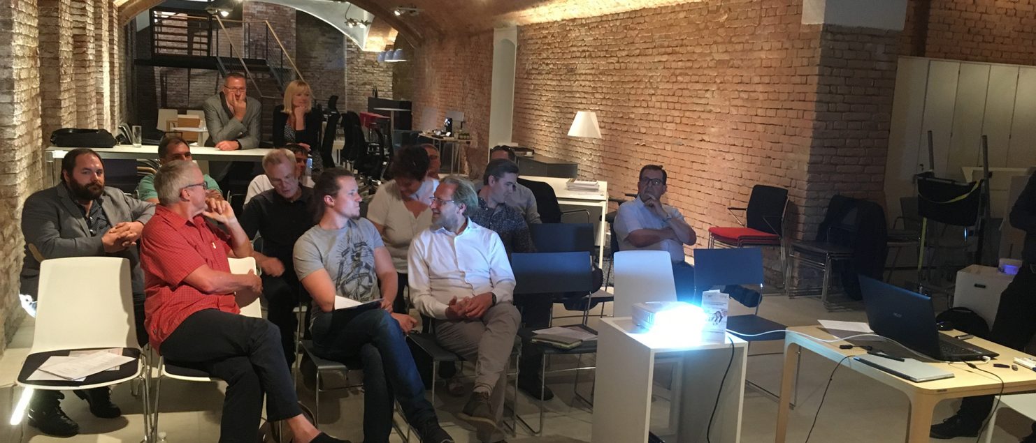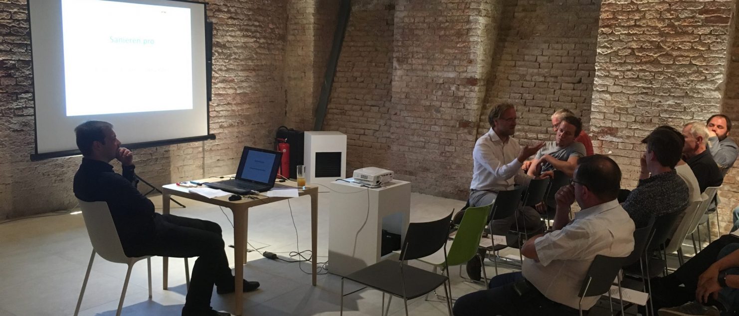 Zu Gast bei Wiesner und Hager: Das ‚Sanieren.pro‘ Netzwerk traf sich zu seinem ersten start-up Meeting. Ziele und Kompetenzen des Netzwerkes sind die treuhänderische Baubegleitung bis zur Schlüsselübergabe, die Schaffung von architektonischem Mehrwert und die Realisierung der ‚Glücklichen Baustelle‘. Als klimaaktiv Partner stellt das Firmennetzwerk seinen Kunden nach Fertigstellung eines Sanieren.pro-Projektes eine Zertifizierung zur Verfügung. Robert Kaltenbrunner von Hiking Days wird die Gruppe als Coach begleiten (hier im Gespräch)